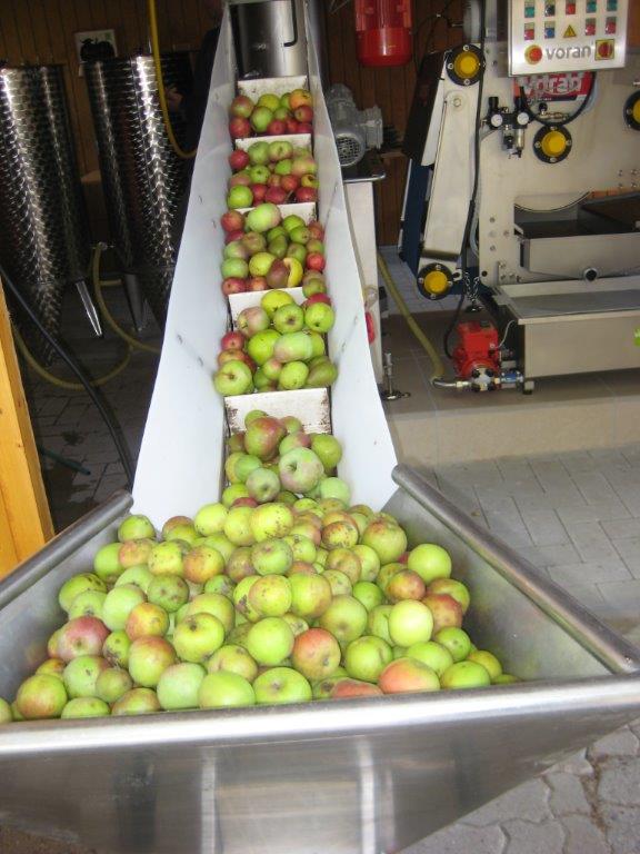 Unsere Anlage besteht aus Wascheinheit, Mühle, Bandpresse, Pasteur und Abfüllstation. Alle Schritte sind sichtbar und nachvollziehbar – Sie sehen, wie aus Ihrem Obst frischer Saft wird.